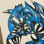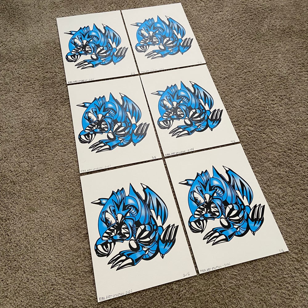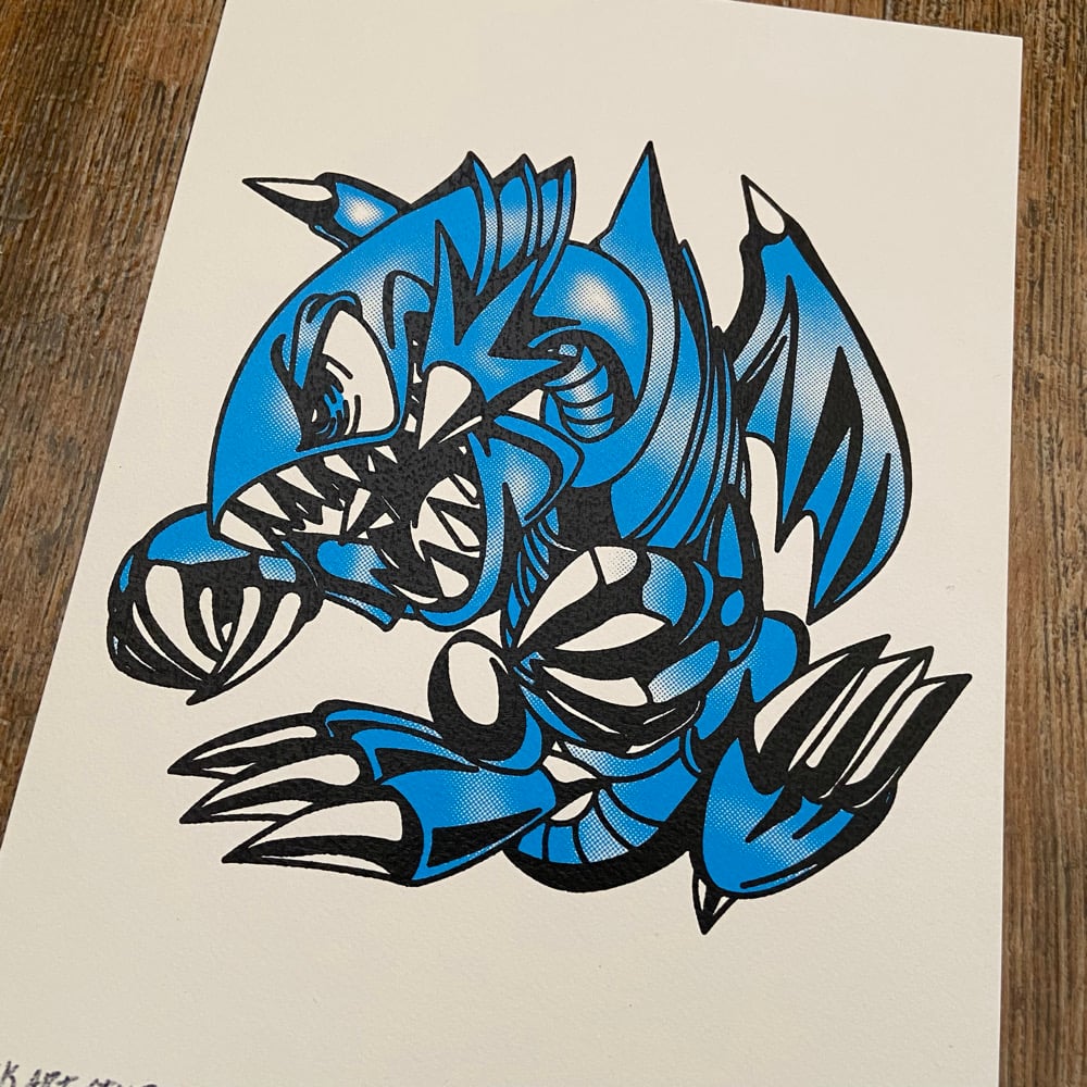 2 color art print of a blue eyes toon dragon from Yu-GI-Oh
