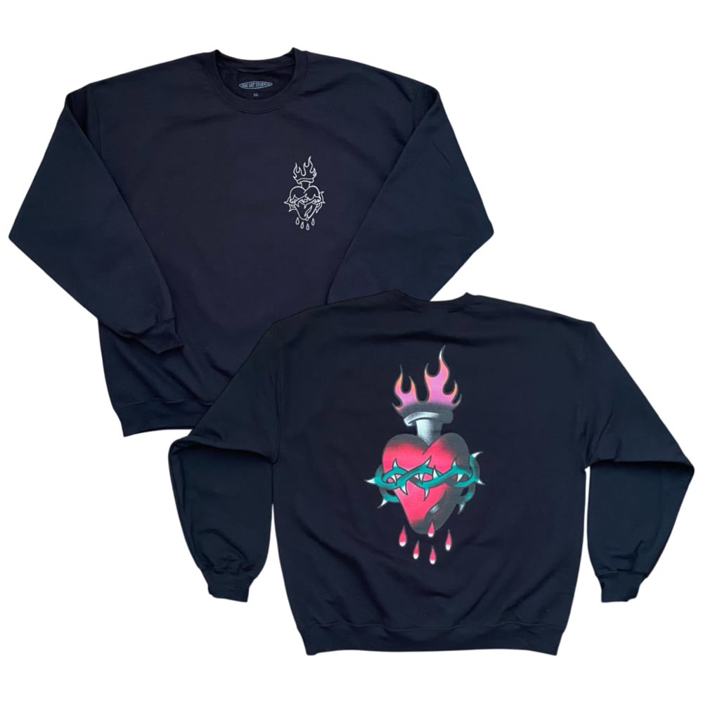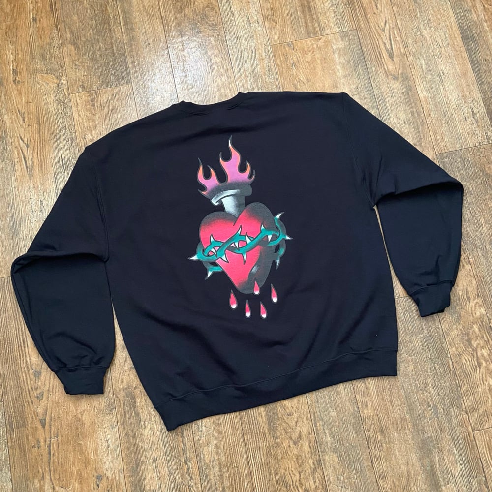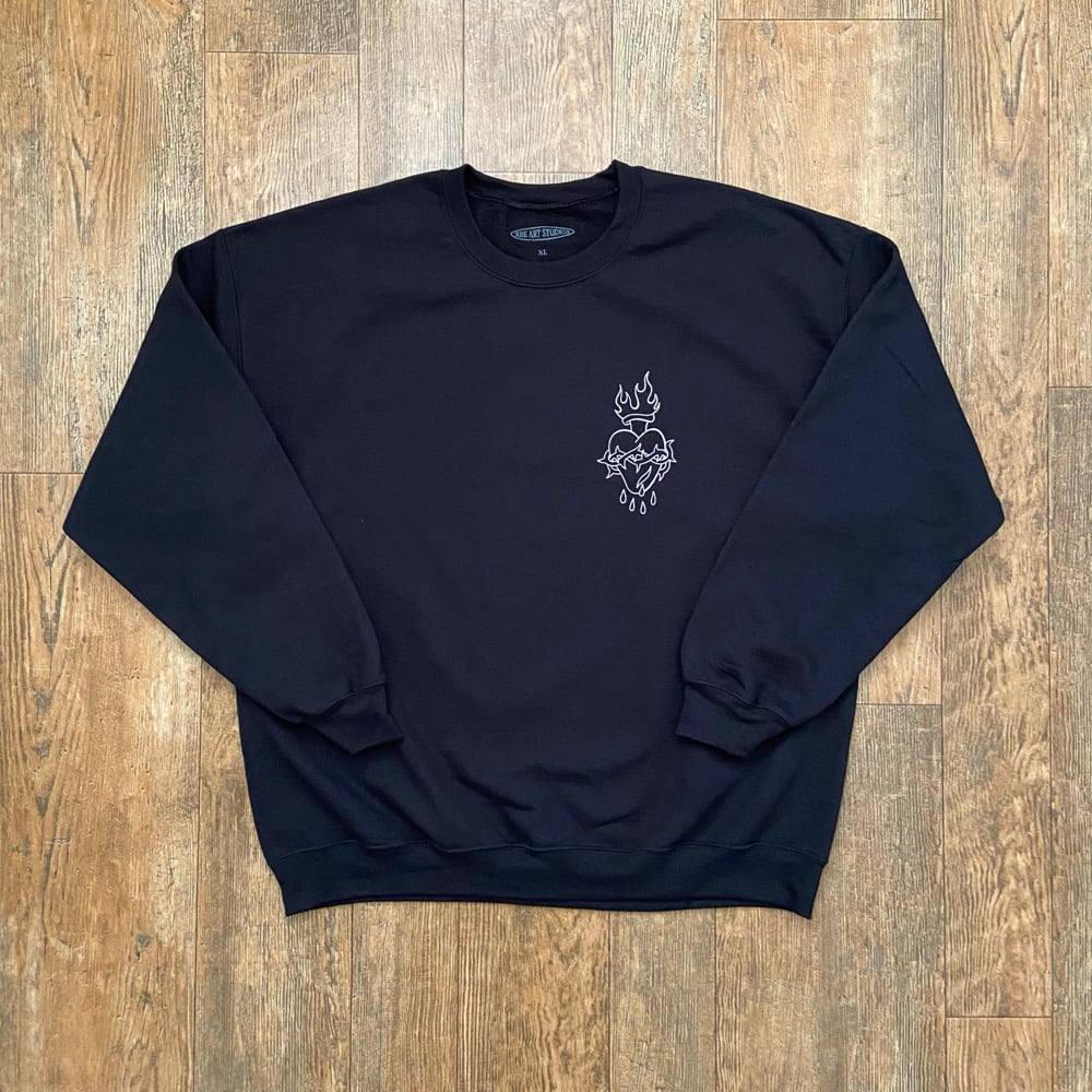 printed on 8.5oz 50/50 crewneck sweatshirts.